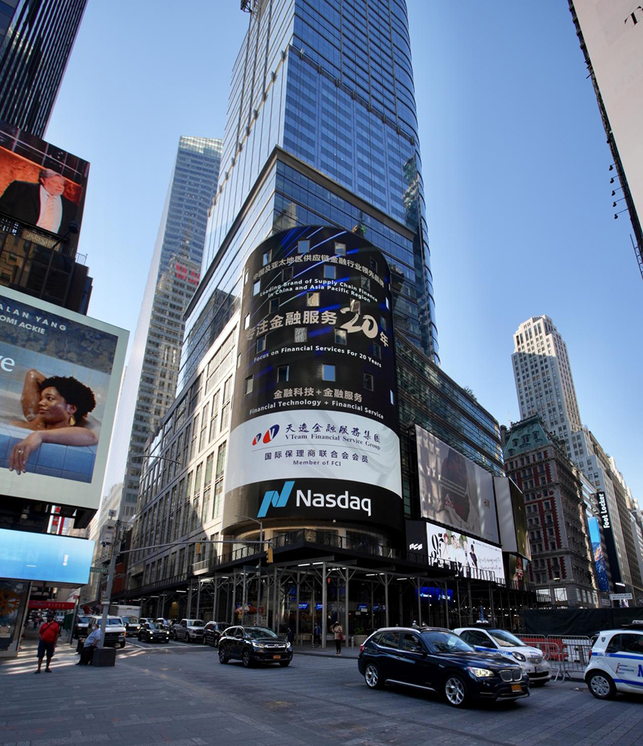 ? 2021年,登陸美國納斯達克大屏,成為中國供應鏈金融行業首家成功登陸納斯達克大屏的公司
