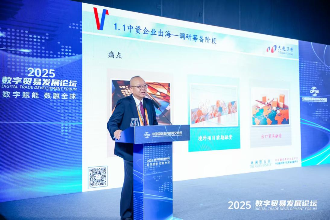 在“聚焦數(shù)字貿(mào)易出海戰(zhàn)略與全球機(jī)遇”專題環(huán)節(jié),天逸集團(tuán)董事長(zhǎng)溫峰泰結(jié)合天逸集團(tuán)多年深耕國(guó)際市場(chǎng)的實(shí)戰(zhàn)經(jīng)驗(yàn),系統(tǒng)闡述了中國(guó)企業(yè)出海過(guò)程中面臨的核心挑戰(zhàn)與戰(zhàn)略機(jī)遇,并重點(diǎn)介紹了天逸在國(guó)際金融服務(wù)、海外銀行服務(wù)及合規(guī)風(fēng)控等方面的數(shù)字化解決方案。